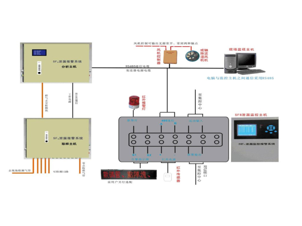 *通通过RS485支持测量数据远传输出如:门口安装大型LED显示屏,远处立即看到测量参数和系统运行情况。(需用户另行选配)。